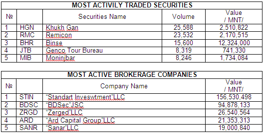 Mongolian Stock Exchange organized 5 securities trading sessions and made transaction of MNT12,654,532.868.00 between 12 January 2015 and 16 January 2015.