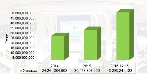 Монголын хөрөнгийн биржийн хувьцааны хоёрдогч зах зээлийн арилжааны үнийн дүн сүүлийн 3 жил дараалан өсч байгаа ба 2016.12.16 өдрийн байдлаар 48.3 тэрбум төгрөгийн арилжаа хийгдсэн нь өмнөх оны жилийн эцсийн дүнгээс 58.4 хувиар өссөн үзүүлэлт юм.